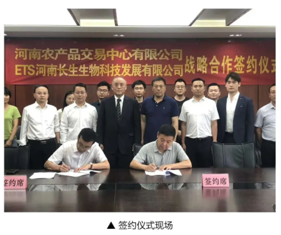 6月12日,ETS河南長生生物科技發(fā)展有限公司與河南農(nóng)產(chǎn)品交易中心有限公司在鄭州簽署戰(zhàn)略合作框架協(xié)議。