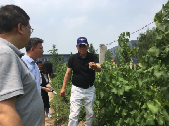 ▲劉長(zhǎng)生教授帶領(lǐng)參觀ETS液體菌劑一體化生產(chǎn)車間