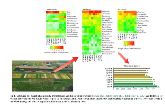 輪作是管理農(nóng)業(yè)生態(tài)系統(tǒng)生物多樣性的一種傳統(tǒng)而實用的方法,可以增強土壤健康,抑制病蟲害爆發(fā),從而提高產(chǎn)量。作物輪作的價值和效率取決于幾個因素:作物類型用于旋轉(zhuǎn)、旋轉(zhuǎn)系列和某些作物的應用頻率、旋轉(zhuǎn)長度、農(nóng)業(yè)歷史農(nóng)田和土壤特性。這些因素可以在許多方面影響土壤健康。例如,作物輪作可以通過破壞與特定作物或作物基因型相關(guān)的土傳病原體的生命周期,為某些土壤功能微生物的生長提供更好的機會,限制病害壓力。