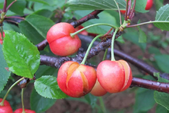 櫻桃采摘前果實(shí)表面出現(xiàn)發(fā)軟、發(fā)蔫癥狀;或出現(xiàn)水浸狀果肉(玻璃果);或出現(xiàn)豆斑??;或在果實(shí)進(jìn)入膨大期后,遇到雨水就出現(xiàn)裂果現(xiàn)象。