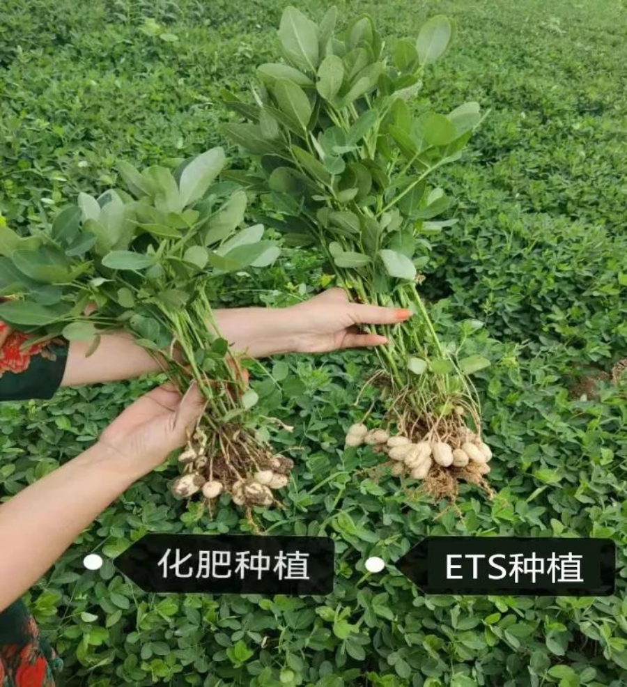 隨后參觀人員到土壤改良實驗田查看了花生生長情況,應(yīng)用ETS技術(shù)種植的花生同樣晚一周種植,但明顯優(yōu)于用普通化肥種植的花生,植株更高、長勢旺根系更發(fā)達、掛果多果實更飽滿,郭寺村支部書記姚國成表示,水谷農(nóng)業(yè)公司在我村托管500畝玉米和花生長勢喜人,豐收在望,村子里很多當(dāng)初未托管土地的村民看到莊稼長勢對比后都感到十分后悔,紛紛表示等到秋收后也要將自己的土地進行托管。