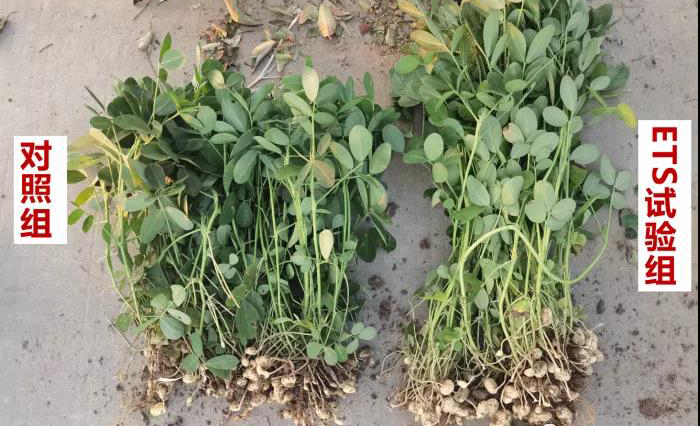 萬冢鎮(zhèn)郭寺村五百畝實驗基地采用ETS改良花生種植土壤,改良地塊的花生根系毛細根和根瘤菌數(shù)量顯著增多,促進了植株對營養(yǎng)元素的吸收和轉(zhuǎn)化;花生座果率提升約25%、株高增加約30%,預(yù)計畝產(chǎn)提升約25%,實現(xiàn)了花生的減肥增產(chǎn)。