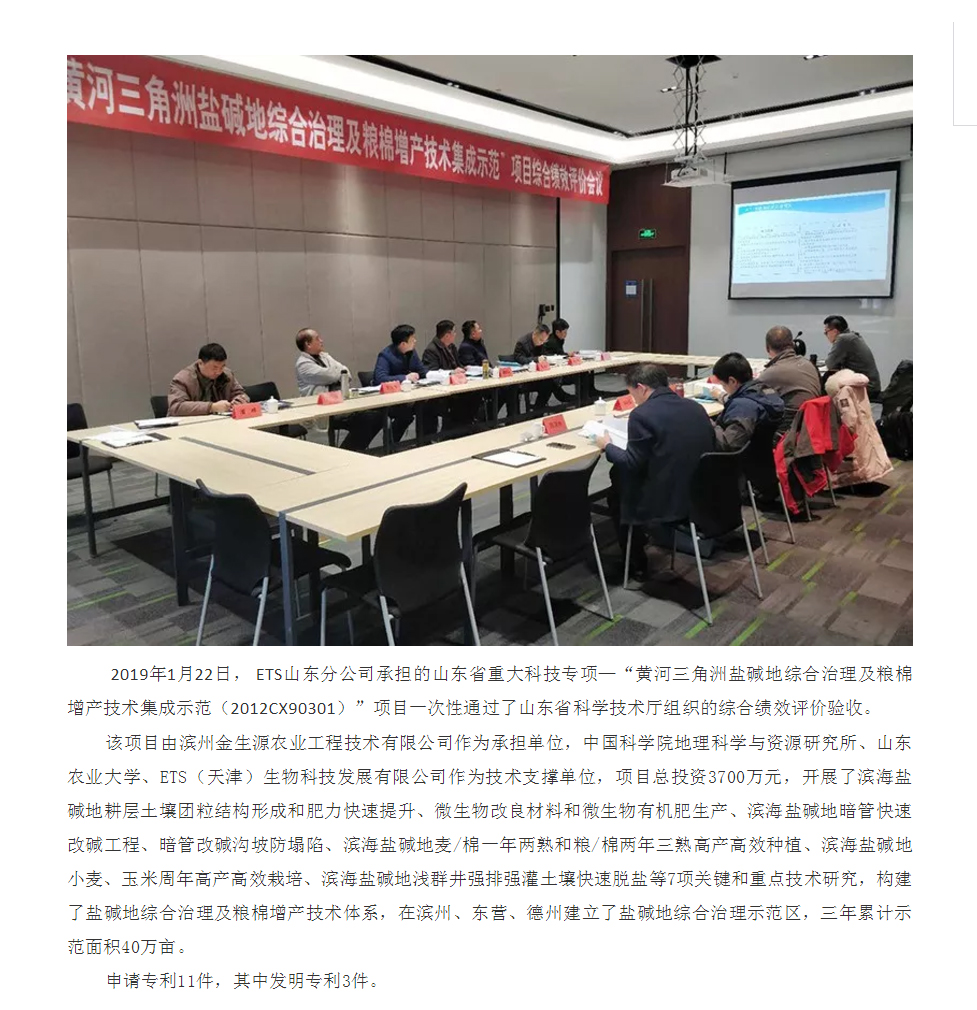 ETS山東分公司承擔(dān)的山東省重大科技專項(xiàng)--“黃河三角洲鹽堿地綜合治理及糧棉增產(chǎn)技術(shù)集成示范”項(xiàng)目順利通過(guò)驗(yàn)收